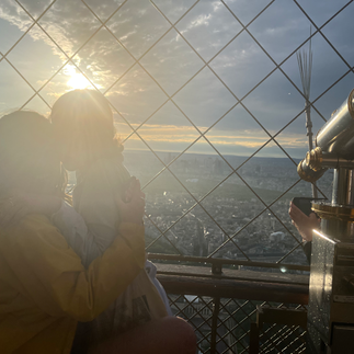 We bought tickets to go all the way to the top, so we skipped the first observation deck and went to the elevator that goes to the top. It was still raining at this point, but we were far enough to the center that it was just cold. We skipped the second deck and went alllll the way up. The top observation level is technically two decks: the lower is inside and the upper is open air (that is fenced off of course). We stood in the closed one for awhile, just trying to warm up. The view from there was even better than I remembered. Parker is not a huge fan of heights (putting that lightly for you Parker), so we stayed with him and helped him conquer his fears. He actually was such a trooper considering the conditions. Eventually we convinced him to go to the upper of the top decks, and we actually hung out there for awhile. We bounced between the two decks on the top level. The rain stopped and the sun came out, which made the view of Paris even better. Parker, Sam and I stayed on the open deck for a long time sharing stories and talking. Eventually we were cold and had lost the others, so the three of us decided to head down and check out the two observation levels we had skipped. The second one is where the gift shop and bathrooms are. It was open air but there wasn't any seating or anything, so we went down to the first level. It has some restaurants-which someday I would like to eat at, but not today. The sun began to set so we went to that side of the tower and watched it. This moment is probably another one of my favorite things I've ever experienced.